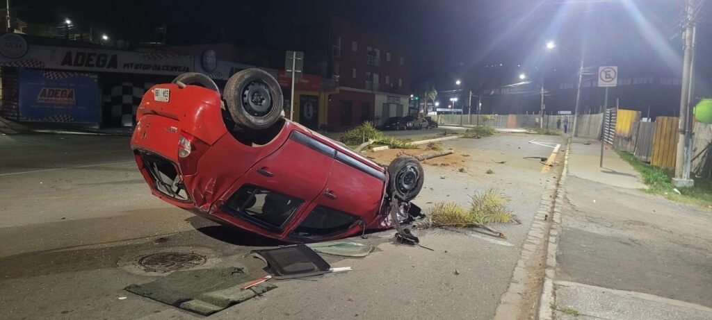 Motorista emocionado tenta fugir da GCM, mas acaba capotando o veículo durante a fuga.