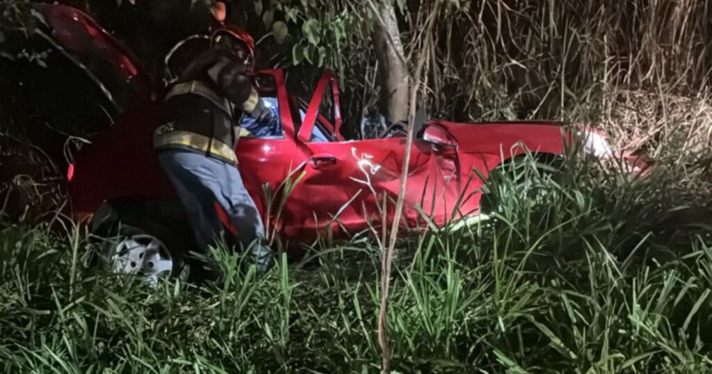 O acidente ocorreu na Marginal do Rio Jundiaí, em Campo Limpo Paulista. O veículo bateu contra uma árvore, evitando que caísse completamente no rio.