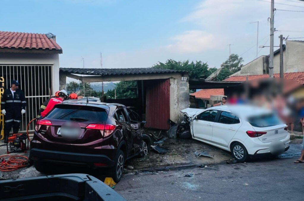 A vítima desceu com seu veículo à rua Itapema, bateu em outro veículo na rua Pocone e depois destruiu a frente de uma residência.