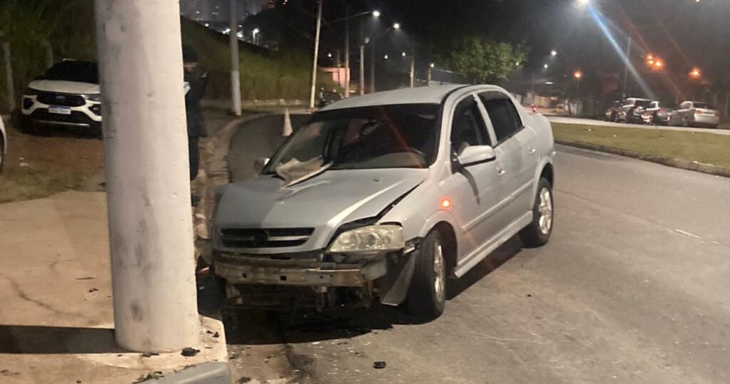 Motorista perde o controle da direção e bate contra um poste de energia elétrica na Avenida Samuel Martins, na região do bairro Jardim do Lago, na noite deste domingo (25).