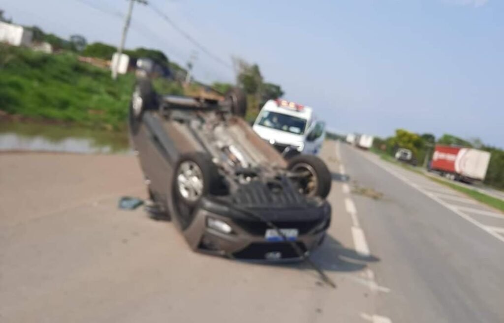 Na manhã desta sexta-feira (29), um veículo acabou capotando na Rodovia Edgard Máximo Zambotto.