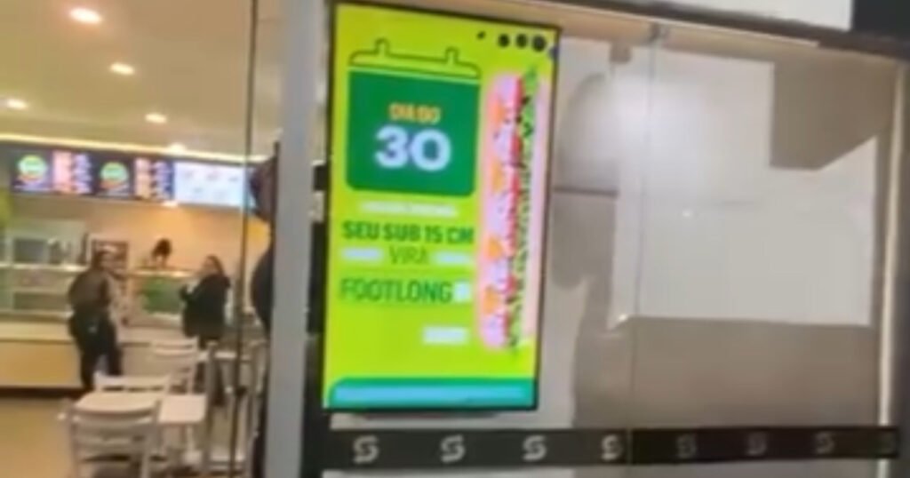 A mulher foi até a Subway; ela queria o lanche da promoção desta quarta. A oferta geralmente ocorre no dia 30 de cada mês e permite que o cliente compre um sanduíche de 15 cm e receba um de 30 cm pelo mesmo valor, dobrando o tamanho do sanduíche.