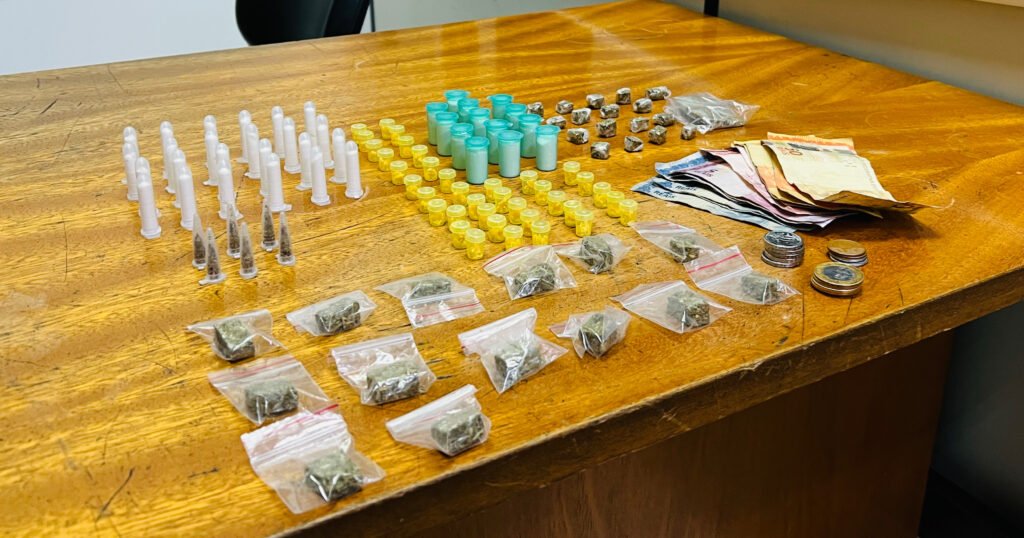 Foram localizadas porções de drogas, prontas para venda e dinheiro trocado.