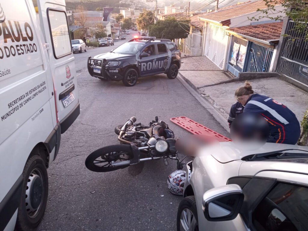 Na quarta-feira (18), por volta das 17h00, na Rua Antonio di Gioia, no Jardim Califórnia, em Campo Limpo Paulista, L.T.S., 23 anos, conduzia uma motocicleta Honda e, ao executar a manobra conhecida popularmente como “grau”, isto é, a infração denominada como malabarismo no Código de Trânsito Brasileiro, perdeu o controle da direção e acabou atingindo a viatura da ROMU na lateral e, por fim, colidiu com outro veículo devidamente estacionado na via.