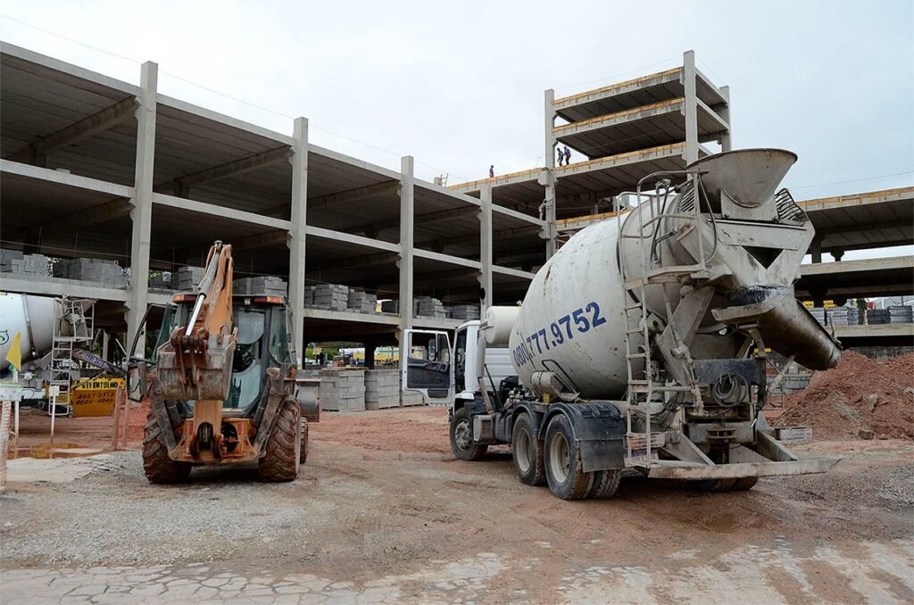 Após a fase de pré-moldagem, o prédio recebeu as lajes e o concretamento, solidificando a estrutura. Depois, os serviços avançaram na construção do contrapiso.