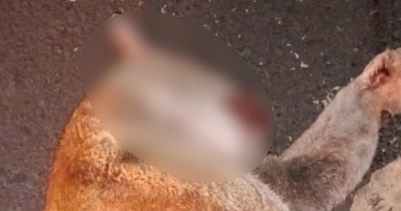 Um motorista que estava passando pelo local parou e retirou o animal da via, pois os veículos estavam passando por cima dela.