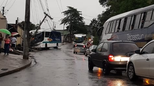 No começo da noite desta terça-feira (29) um ônibus fretado atingiu um poste de energia elétrica, Na rua José Rabelo Portela, região da Vila Popular, em Várzea Paulista.