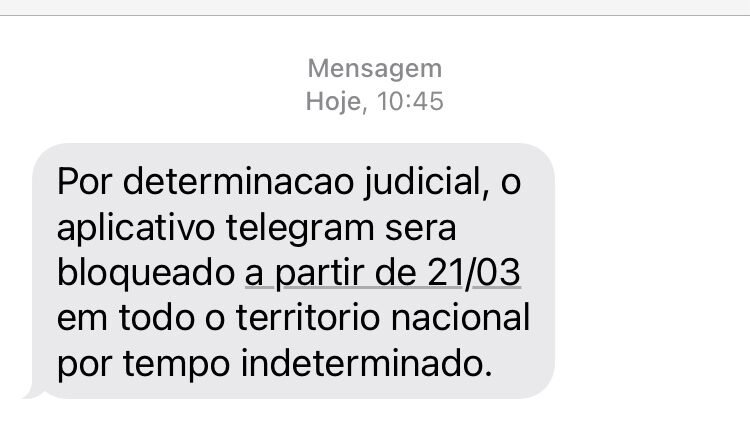 Após a determinação do ministro Alexandre de Moraes do Supremo Tribunal Federal (STF) sobre a suspensão do aplicativo de mensagens Telegram no país, a operadora Tim começou o envio de SMS para clientes comunicando a indisponibilidade do aplicativo a partir desta segunda-feira (21).
