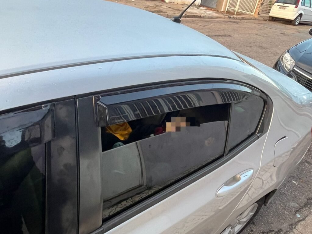 Na rua Augusto Maia, a equipe avistou um veículo estacionado em via pública e uma criança de aproximadamente um ano de idade dormindo no interior do veículo.