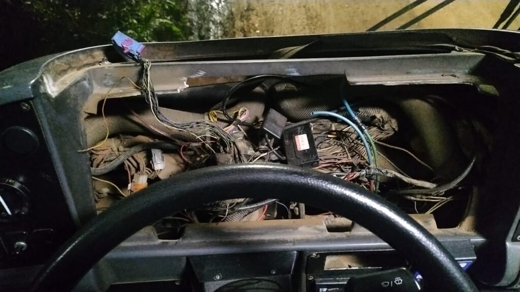 O ônibus estava estacionado na Rua 6, no bairro Parque Santana. Quando o motorista entrou no veículo para iniciar a linha, percebeu que o painel havia sido levado (furtado).