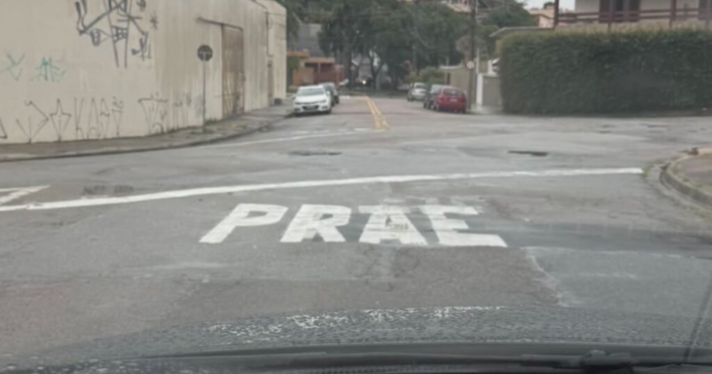 Pintura de trânsito com erro de grafia em rua de Jundiaí repercute na web: ‘PRAE’