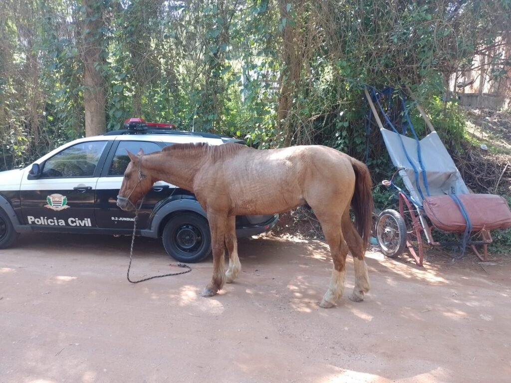Nesta quarta-feira (10), Policiais Civis da Delegacia de Polícia de Civil de Jarinu, recuperaram um cavalo é uma charrete.