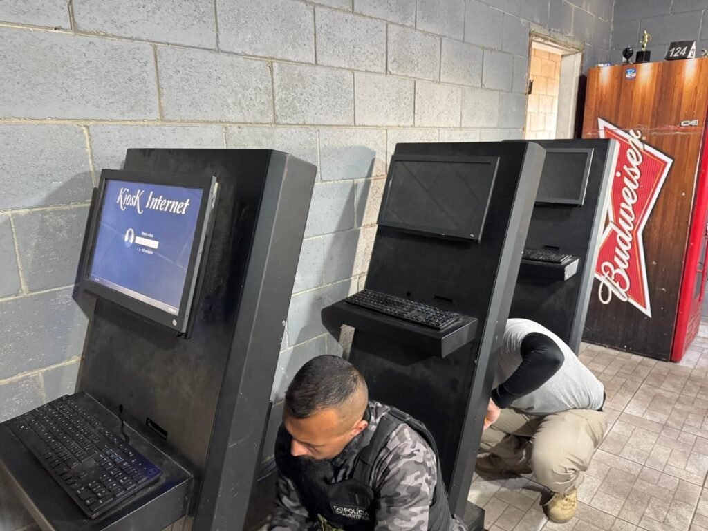 A partir de uma denúncia, os policiais chegaram ao estabelecimento, onde foi possível constatar que as máquinas estavam em pleno funcionamento.