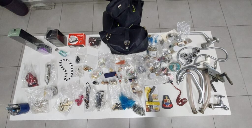 Com ele, foram localizados diversos itens furtados, totalizando quase 7 mil reais. O indivíduo informou que seu comparsa havia fugido pelo telhado vizinho.