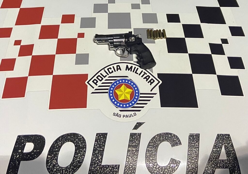 Em revista pessoal foi localizado um revólver e foi posteriormente verificado que o mesmo era um simulacro, com seis munições semelhantes a projéteis de um revólver verdadeiro.