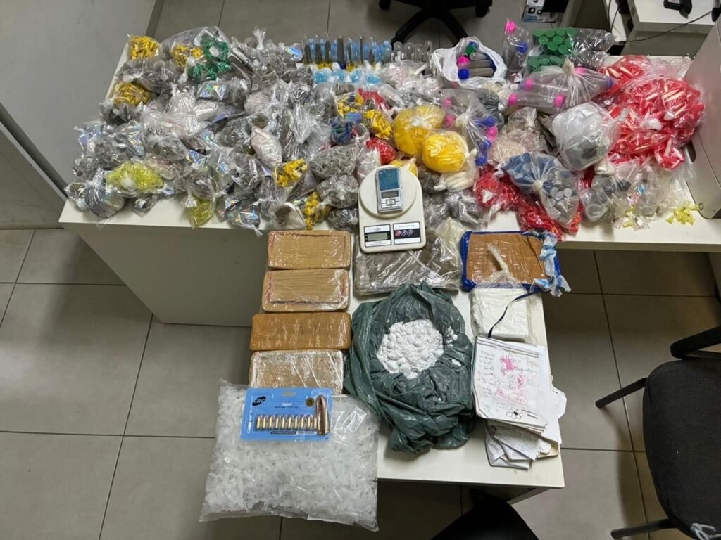Diante da fundada suspeita, os policiais entraram no imóvel e localizaram uma grande quantidade de entorpecentes, totalizando cerca de 20 kg, além de munições de calibre 9 mm. Entre as drogas apreendidas estava o ecstasy, substância comumente comercializada em festas eletrônicas e considerada de alto valor no mercado ilegal.