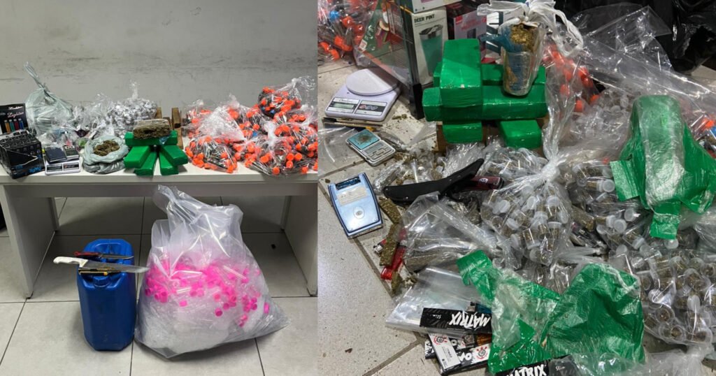 No local funcionava uma espécie de tabacaria e estava entreaberto, sendo possível avistar uma boa quantidade de drogas para venda.