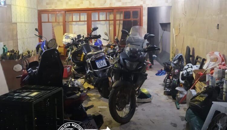 Durante o patrulhamento, a equipe recebeu informações de um denunciante anônimo de que na garagem de uma residência na Rua Santo Antônio e Rua Sandara funcionava um desmanche. Ao averiguar os dois imóveis de forma simultânea, os policiais visualizaram motocicletas estacionadas nas garagens. Ao verificar as placas das motocicletas, os policiais constataram que se tratava de produtos de furto/roubo. Em vistoria nas residências, os policiais constataram que se tratava de um desmanche de motocicletas, onde várias peças e acessórios foram localizados, todos produtos ilícitos.