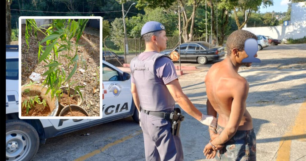 Em contato com o agressor, o mesmo estava com falas desconexas, um pouco alterado, porém não mais agressivo. Ele confessou que era usuário de drogas e que na sua residência cultivava alguns “pés” de maconha e alegou ser para o seu consumo.