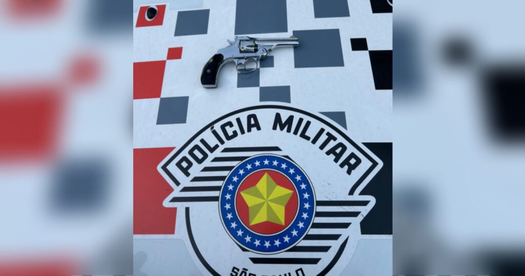 Com o apoio de outra equipe, os policiais realizaram buscas e localizaram um revólver calibre .22, conforme descrição fornecida pela vítima. Diante do flagrante, o suspeito recebeu voz de prisão, sendo necessário o uso de algemas.