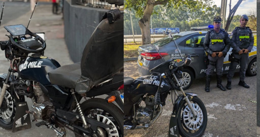 Durante patrulhamento na SP-348 (Rodovia dos Bandeirantes), na altura do KM 84,no sentido Sul foi avistado uma motocicleta com características alteradas, foi abordada e constatado que o condutor é habilitado, porém a motocicleta estava com um volante no lugar do guidom, retrovisores e assento de veículo de quatro rodas, aparentemente as peças eram do modelo Fiat/Uno e o condutor alegou que faz conteúdos na internet e que esse tipo de veículo gera engajamento.