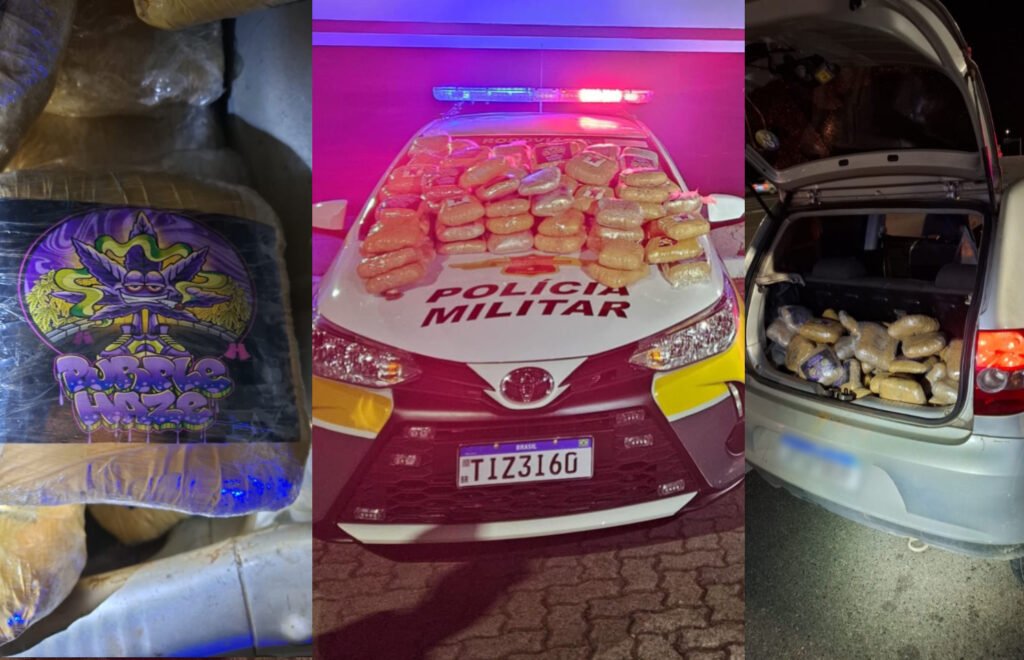 Após a busca veicular, foram localizados no porta-malas do veículo 90 (noventa) tabletes de substância análoga à maconha, pesando 45 kg.