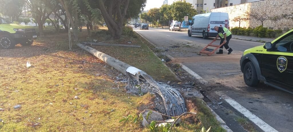 O impacto quebrou o poste ao meio e deixou o condutor preso às ferragens. Equipes do Corpo de Bombeiros, SAMU, Polícia Militar e agentes de trânsito foram acionados. A vítima foi retirada pelos bombeiros e socorrida.