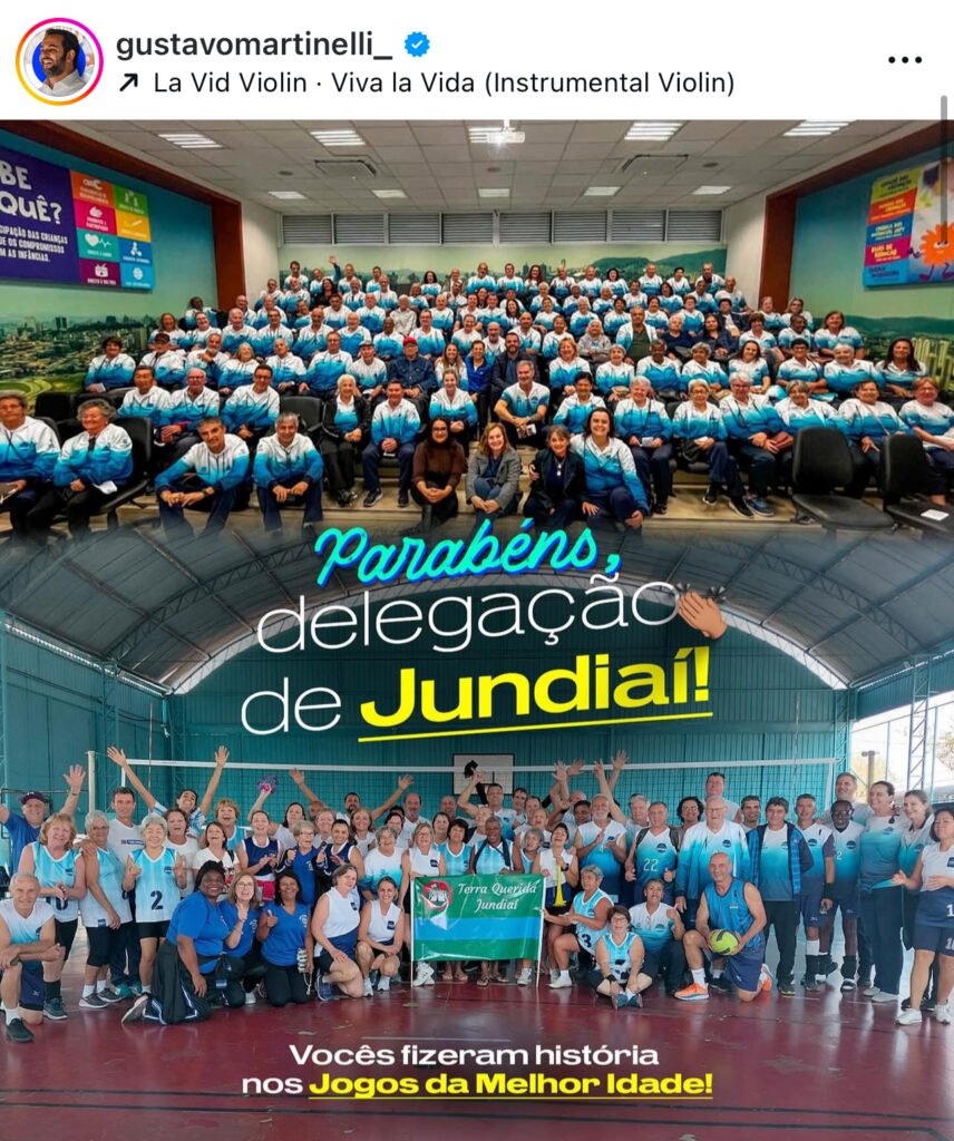 Longe das quatro linhas, o prefeito Gustavo Martinelli usou suas redes sociais para parabenizar a delegação do JOMI pelo belíssimo trabalho feito nos jogos da melhor idade, disputados na cidade de Cerquilho.