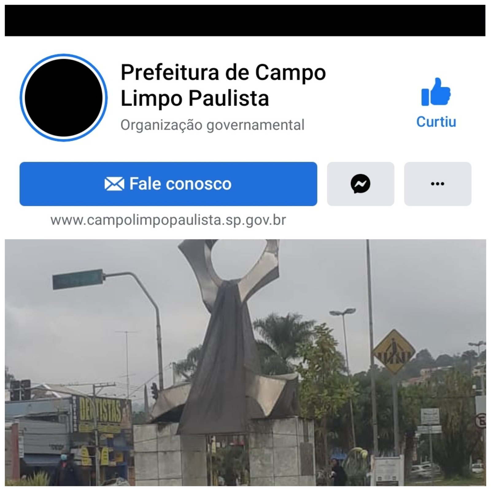 No Facebook a prefeitura trocou sua tradicional foto de perfil e capa, pelo preto.