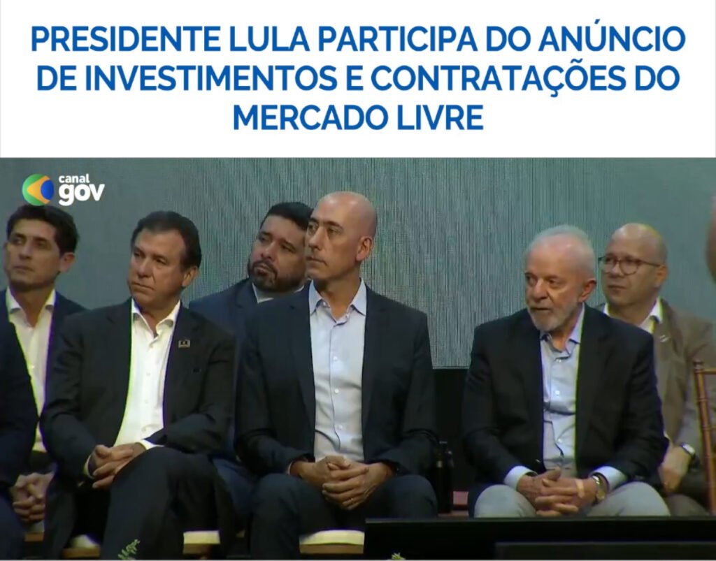 O presidente da República, Luiz Inácio Lula da Silva, participa, nesta segunda-feira (7/4), do anúncio de investimentos e contratações do Mercado Livre, acompanhado de Fernando Yunes, vice-presidente sênior da empresa no Brasil, que anunciará o aporte anual da empresa no País em 2025.
