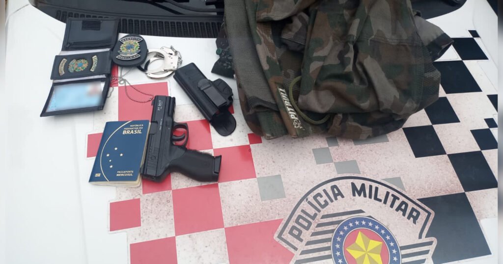 Ao realizar contato com o indivíduo, as equipes perceberam que ele ostentava distintivo com brasão do Exército Brasileiro e uma algema, ambos pendurados em seu pescoço.