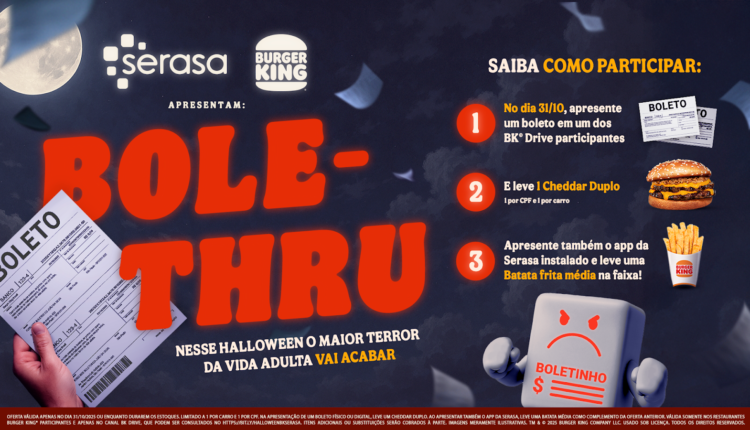 Neste Halloween, o Burger King® e a Serasa se unem para combater um dos maiores terrores da vida adulta: o boleto. Em uma campanha que mistura o humor característico do BK® com o propósito de educação financeira da Serasa, as marcas apresentam o “Boleto Thru”: uma ação inédita que transforma as contas do dia a dia em um sanduíche na faixa.