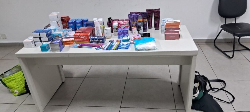 “Durante o patrulhamento pelo bairro, visualizamos o veículo com as mesmas características e fizemos a abordagem; não tiveram reação”, disse o GM Maurivan. Dentro do veículo, foram encontradas três sacolas plásticas contendo diversos medicamentos e produtos farmacêuticos. Sobre a origem desses produtos, os dois homens, um de 29 anos e outro de 31 anos, confessaram os furtos em diversas farmácias da cidade. Somente ontem, foram 07 furtos, segundo eles. As duas mulheres, uma de 29 anos e outra de 20 anos, não se manifestaram.