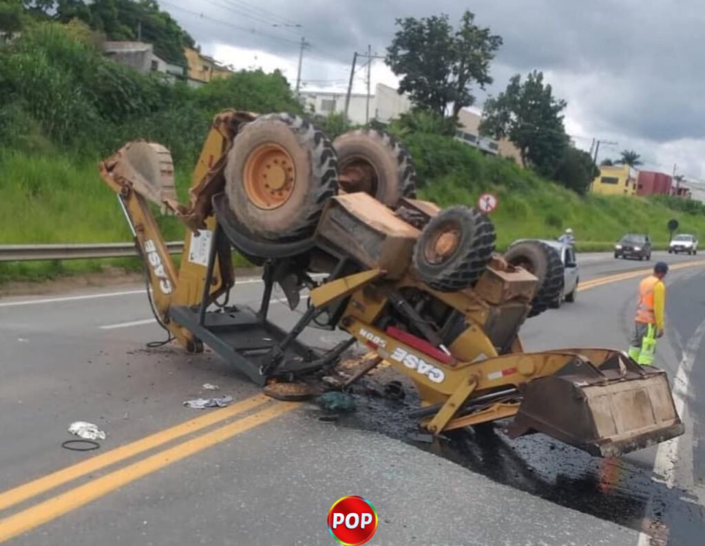 Retroescavadeira capota na Rodovia Edgard Máximo Zambotto
