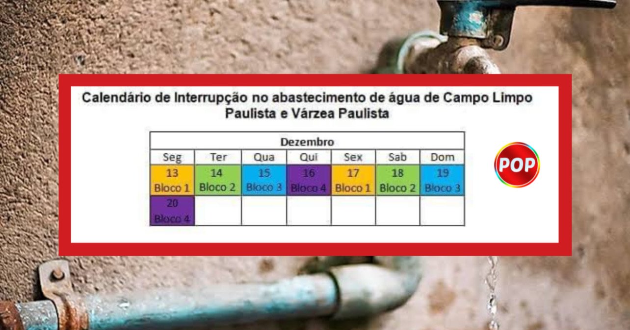 A Sabesp informa que, em razão da forte estiagem que afeta a bacia do rio Jundiaí – situação que vem ocorrendo também em várias regiões do Brasil – será necessário iniciar o rodízio no sistema de abastecimento das cidades de Campo Limpo Paulista e Várzea Paulista a partir de segunda-feira, dia 13/12. A Companhia vem realizando ações para manter a distribuição de água para a população, como manobra da pressão de abastecimento durante a noite e monitoramento dos usos dos irrigantes do rio Jundiaí.