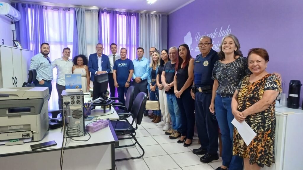 A chefe de Políticas Públicas para as Mulheres da cidade, Patrícia Felix; o vice-prefeito, Fernando Pasqualino; o gestor municipal de Desenvolvimento Social, Leandro Marques; guardas municipais do Projeto Guardiã Maria da Penha (parceria entre a Guarda Civil Municipal e o Ministério Público para atender mulheres vítimas de violência); a gestora executiva municipal de Desenvolvimento Social, Mônica Pazotto; o gestor municipal de Segurança Pública, Leandro Basson; e o gestor executivo municipal de Segurança Pública, Dr. Ricardo Rodrigues, também conheceram de perto a Sala de Acolhimento.