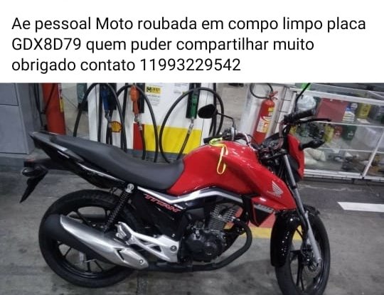 Seguidor pede ajuda para localizar moto furtada em Campo Limpo Paulista