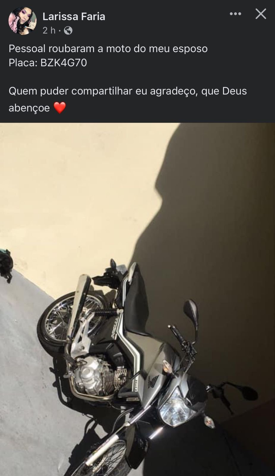 PolíciaRegião Seguidor pede ajuda para localizar moto roubada por Redação em 08/10/2021 Infelizmente mais uma motocicleta foi roubada nesta sexta-feira (08)!