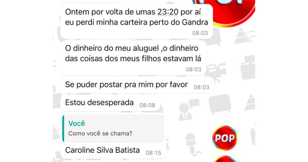 Seguidora pede ajuda após perder a carteira com o dinheiro para pagar seu aluguel.