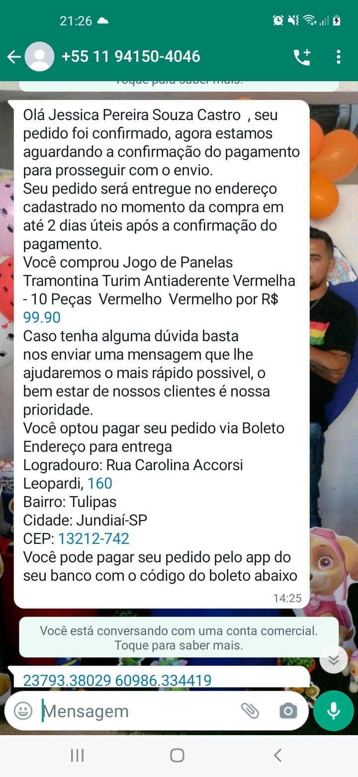 O kit de panelas de R$ 400 reais, estava por apenas R$ 100 reais. Valor que despertou interesse de ambas as seguidoras. Nas mensagens trocadas, eles disseram que iriam fazer a entrega no endereço fornecido, tudo bem elaborado pelo criminoso.