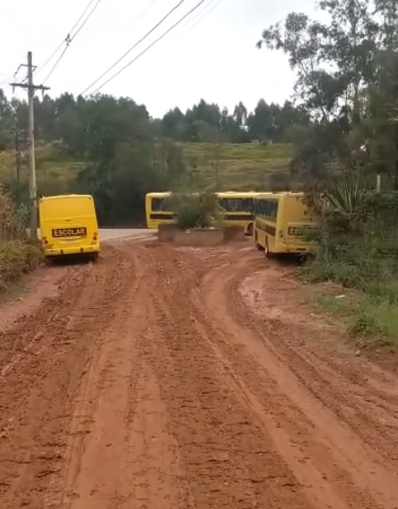 Na data de ontem (09) dois ônibus escolares ficaram atolados em uma rua de terra, no bairro do Castanho, em Jundiaí.