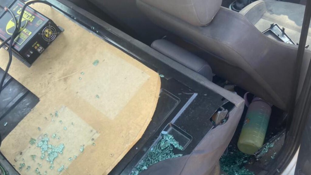 Em questão de minutos, não se sabe se foi um ou mais indivíduos, mas o vidro foi quebrado e o som automotivo foi furtado.
