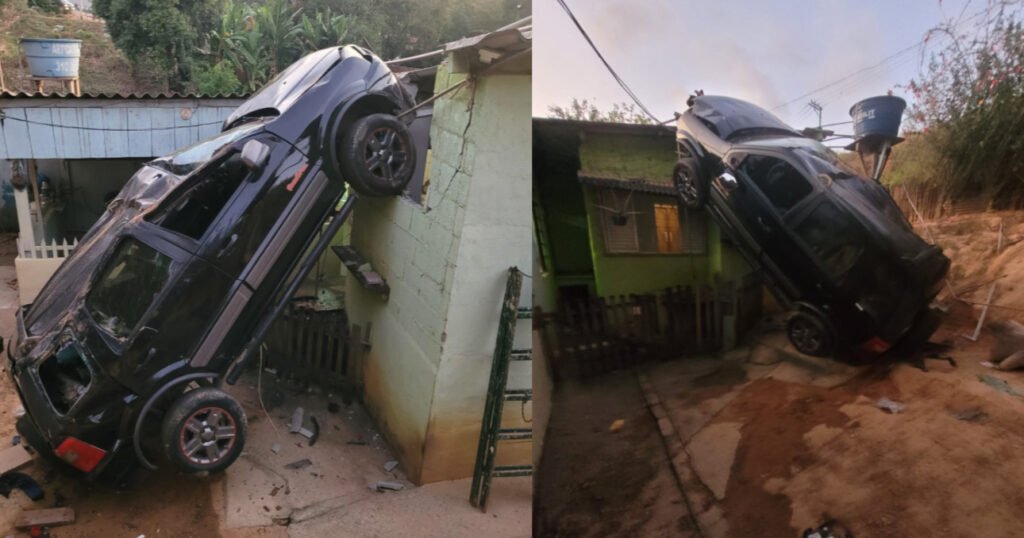 Na tarde deste sábado (28), um veículo desceu uma ladeira sozinho e invadiu uma residência na região do loteamento Parque Petrópolis, em Várzea Paulista.