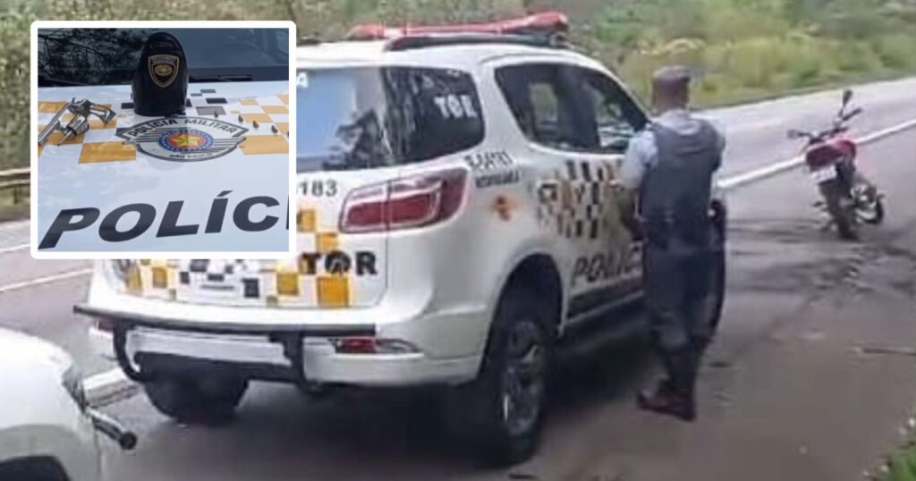 Na data de ontem (30), durante patrulhamento na Rodovia Presidente Tancredo de Almeida Neves, no munícipio de Franco da Rocha/SP, a equipe do Tático Ostensivo Rodoviário abordou e prendeu dois indivíduos em uma motocicleta HONDA/CG 150 com a numeração do motor raspada e uma arma de fogo com seis munições intactas.