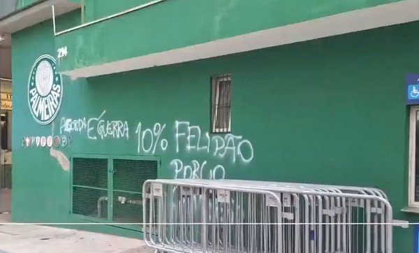 Nesta terça-feira (18), os muros da sede do Palmeiras e das bilheterias do Allianz Parque foram pichados durante a madrugada.