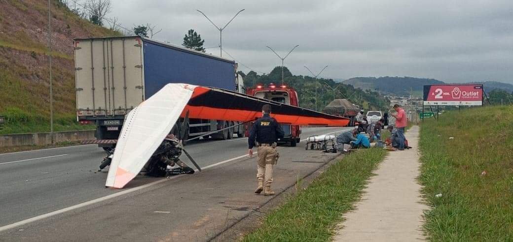 Nessa manhã de sexta-feira, um ultraleve fez um pouso forçado na rodovia Fernão Dias, na altura do atacadista Spani, em Atibaia.