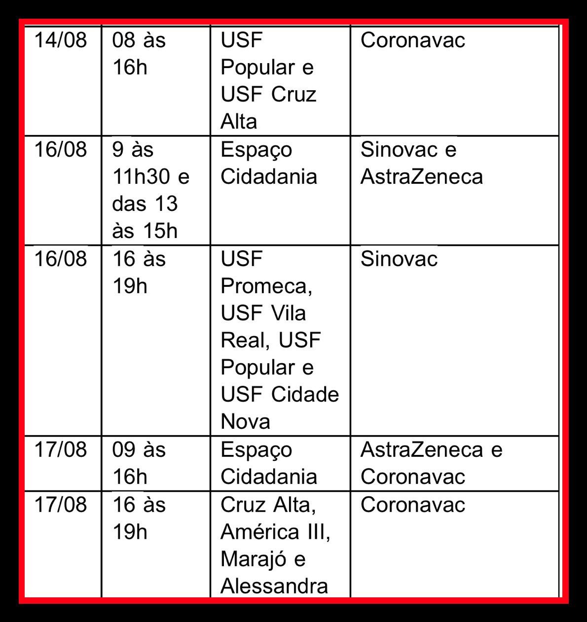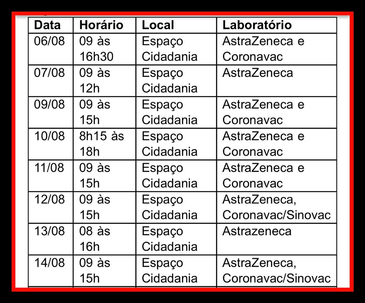 Confira a programação dos próximos dias para a segunda dose: