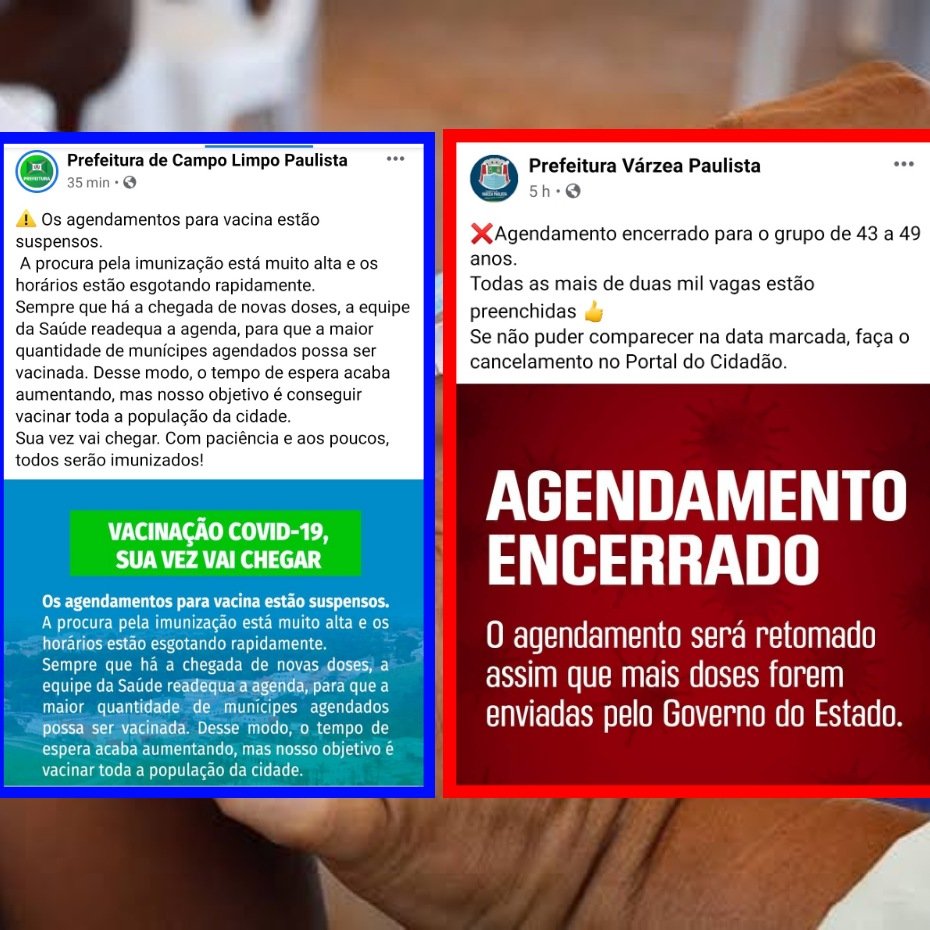 Através das suas redes sociais, cada prefeitura divulgou uma nota informando o encerramento do agendamento. Isso ocorreu devido ao público alvo e alta demanda.