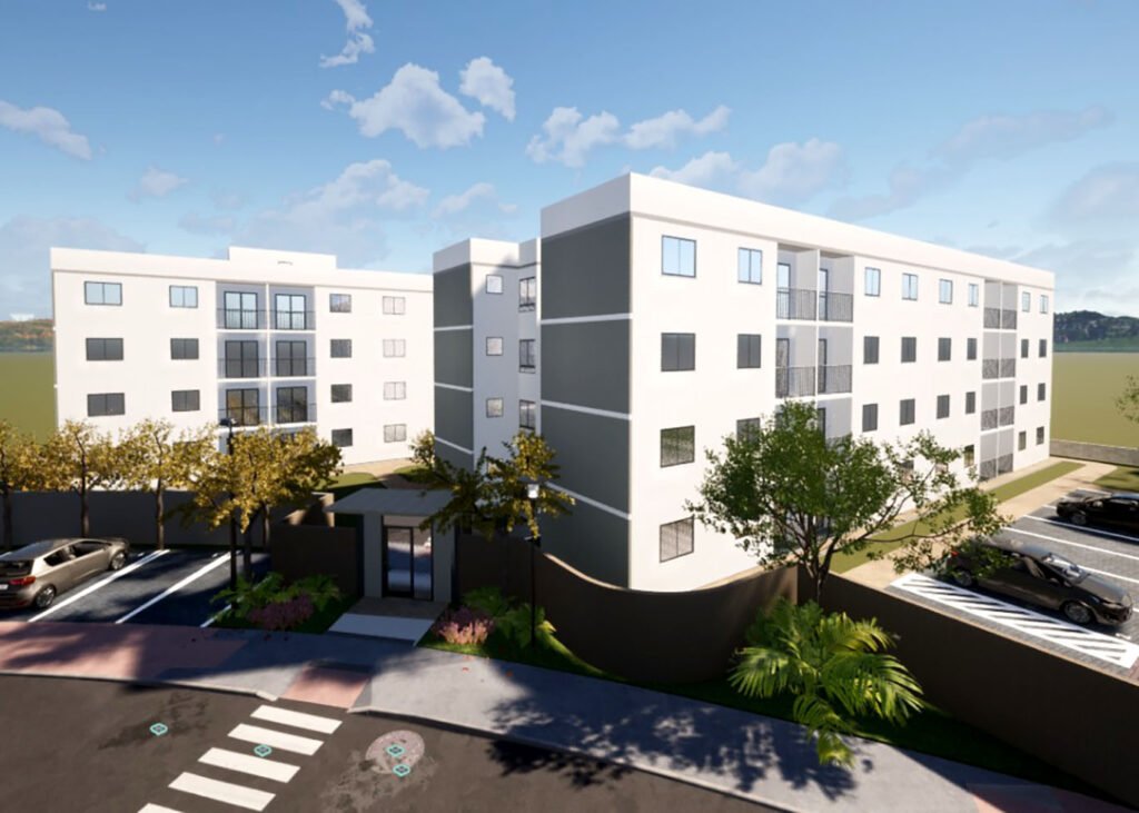 Cada apartamento terá 44m², com dois dormitórios, sala, cozinha e banheiro, além de medição individual de água, energia e gás. O conjunto contará com área de lazer, playground, estacionamento, hall de convivência, infraestrutura para elevador e energia solar. O entorno receberá ainda a compensação ambiental com o plantio de mais de 500 árvores.