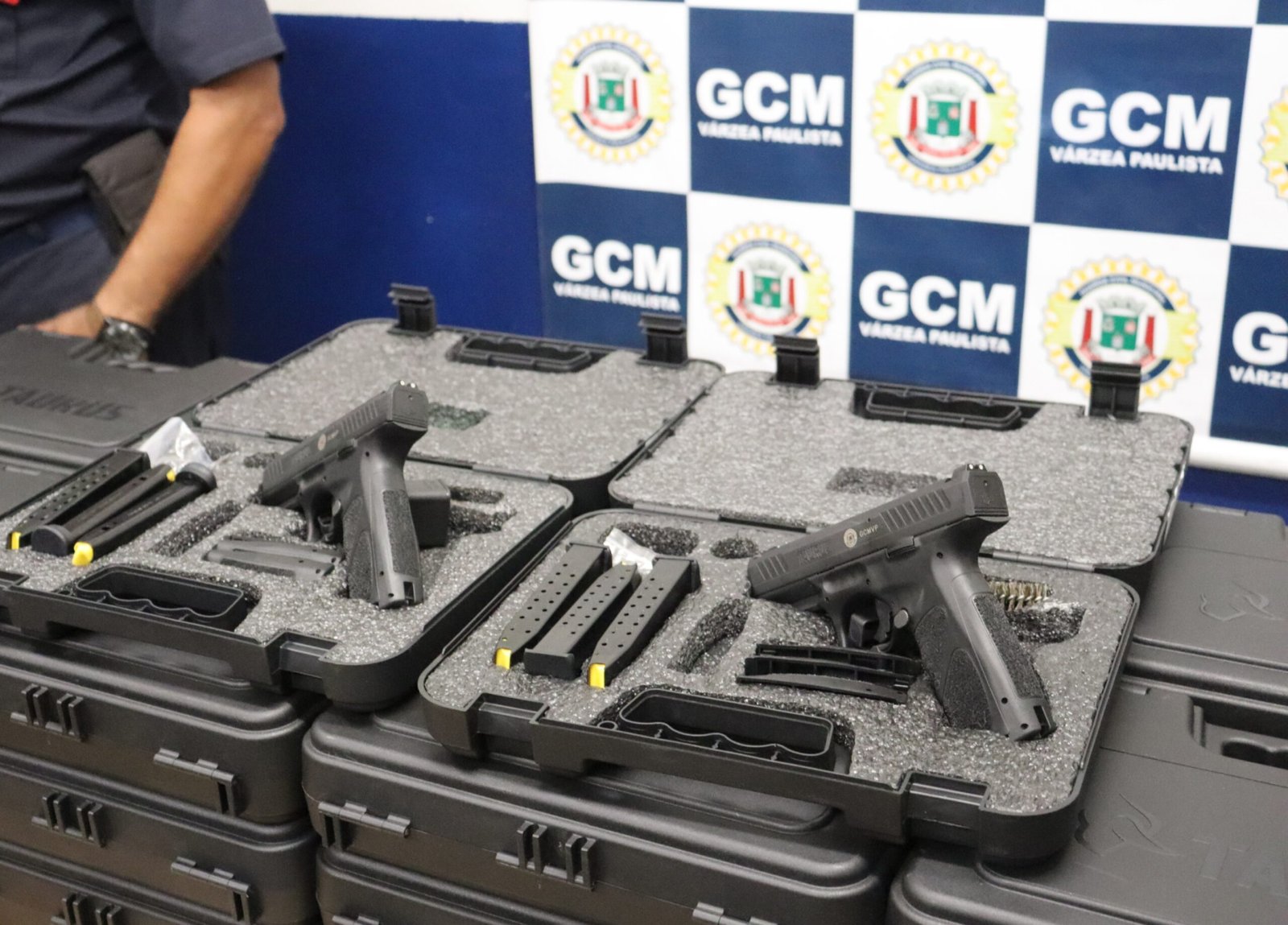 Prestar um patrulhamento comunitário efetivo é a prioridade da Guarda Municipal de Várzea Paulista e, para garantir cada vez mais qualificação para os agentes nas ruas, a Prefeitura de Várzea Paulista investe em treinamentos e reforço no armamento disponível para as guarnições. Com investimento de mais de R$ 225 mil reais a corporação adquire 50 novas armas que serão usadas pelos GCMs. A aquisições foi de pistolas Taurus TS9 9 mm. Que já foi entregue aos Guardas Municipais.